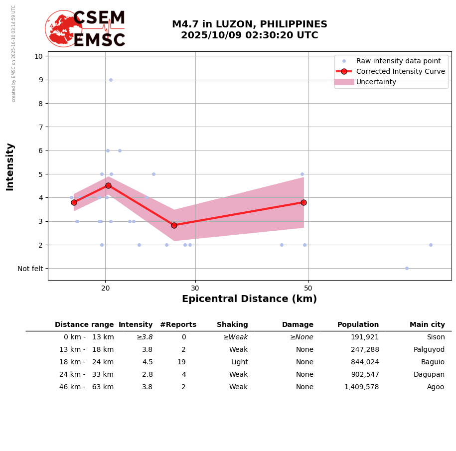 • Furthermore, to avoid the association with wrong events, we filter testimonies in distance and in intensity depending on the magnitude of the seismic event.