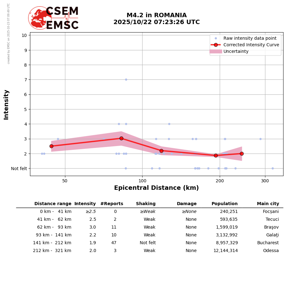 • Furthermore, to avoid the association with wrong events, we filter testimonies in distance and in intensity depending on the magnitude of the seismic event.